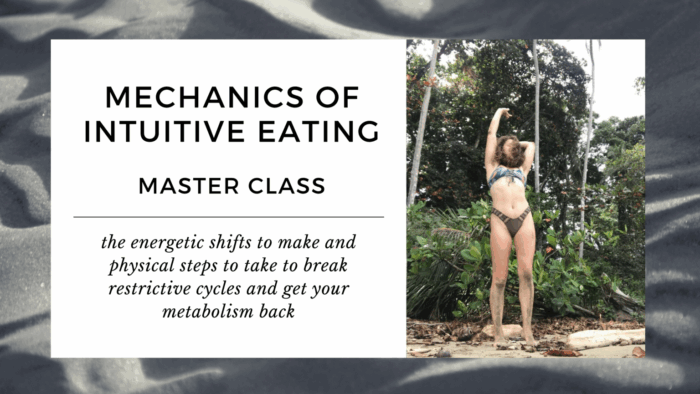 In the Mechanics of Intuitive Eating master class, you’ll learn the energetic shifts to make and physical steps to take to break restrictive cycles and get your metabolism back.
